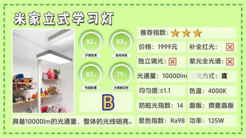 护眼大路灯第十名:米家立式学习灯;具备10000lm的光通量,整体的光线明亮。