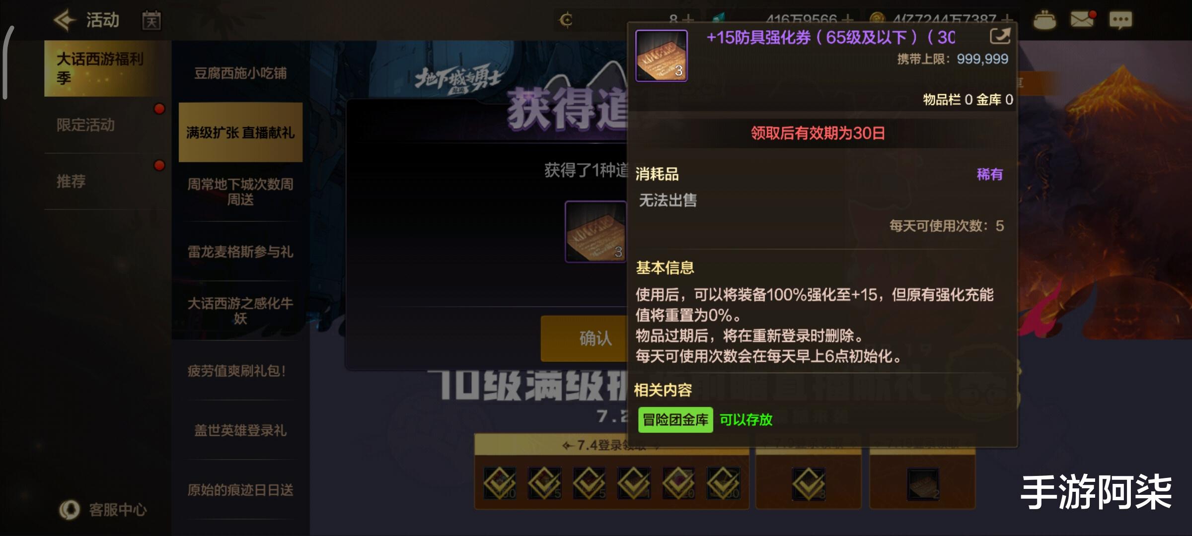 如果小号还没3万的话,近期活动送的+18武器强化券、5个+15防具强化券,平时活动送的强化器、徽章礼盒等打造资源都可以好好利用起来,这些打造资源利用好了,轻松起一个35000抗魔的小号问题不大,70级上线后短期内甚至能冲击一下40000抗魔。