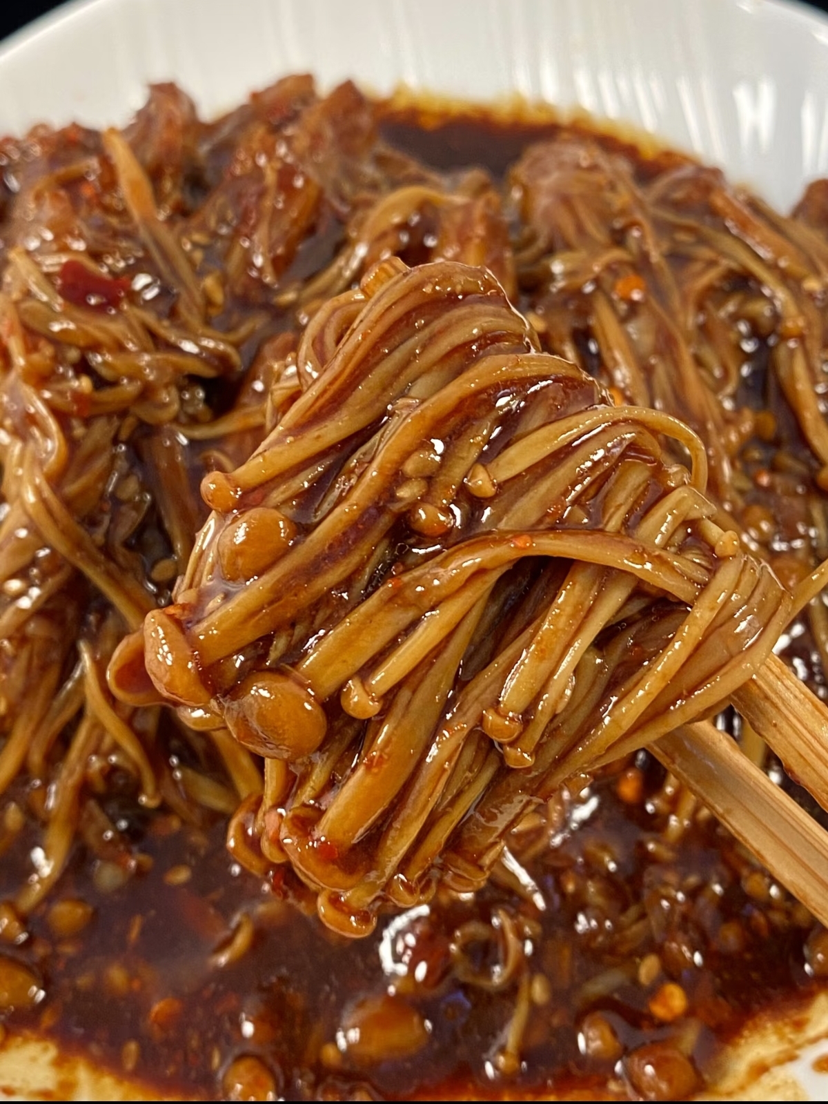 这道菜的魅力,在于它用最家常的食材,碰撞出最不寻常的味觉火花。金针菇,这种在超市里随处可见的菌菇,平日里多是作为汤品或火锅的配角出现。它口感爽滑,自带一种独特的鲜味,但很多人并不知道,当它与香辣调味相遇,便能化身为主角,上演一出令人垂涎三尺的美味大戏。它不再是配角,而是餐桌上当之无愧的明星。