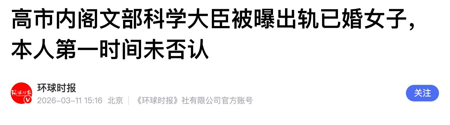 这种逻辑荒谬却体现了政权的算计:大臣私德可以牺牲,但政权面子必须保住,高市本人在回应中没有追究责任,只是关心了大臣家庭,并强调“要更加努力工作”,表面上是稳住局面,实质上是止损策略。