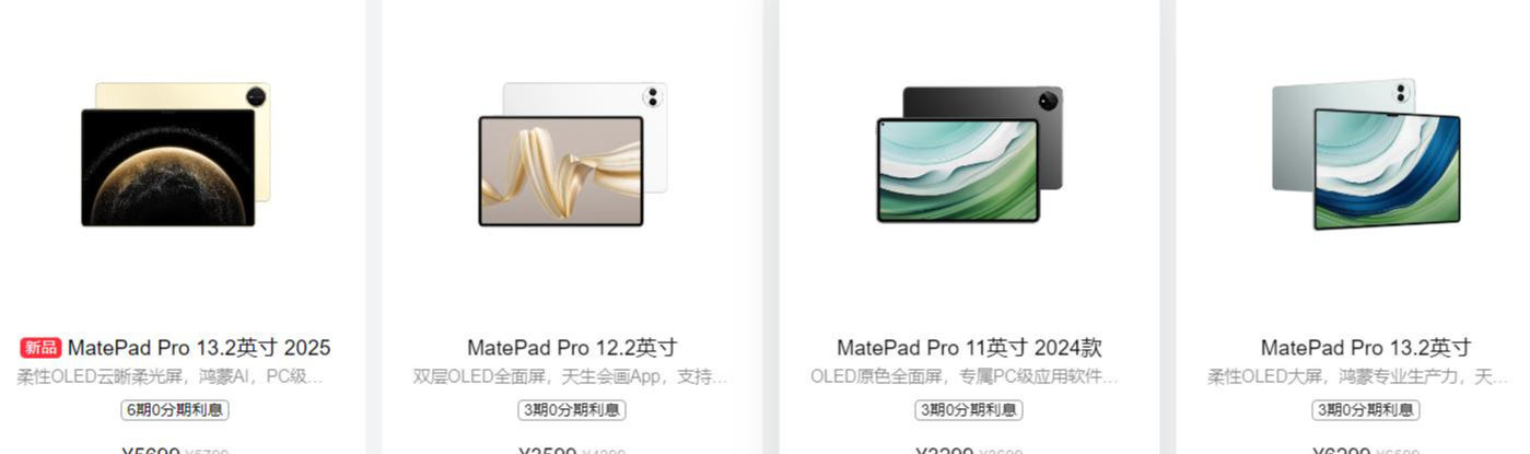 除了最新的2025款 MatePad Pro,其他平板最高优惠700。