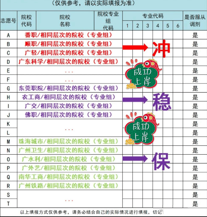 合理设置志愿梯度:按照"冲一冲、稳一稳、保一保"的原则排列志愿顺序,确保有兜底院校。