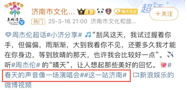 当《晴天》前奏穿越时空隧道,当《七里香》的蝉鸣再次响起,济南歌迷终于等来了跨越六年的约定!3 月 18 日,山东省文旅厅一纸官宣引爆全网 —— 周杰伦 2025 嘉年华巡演将于 9 月登陆泉城,连续三个周末打造沉浸式音乐盛宴。