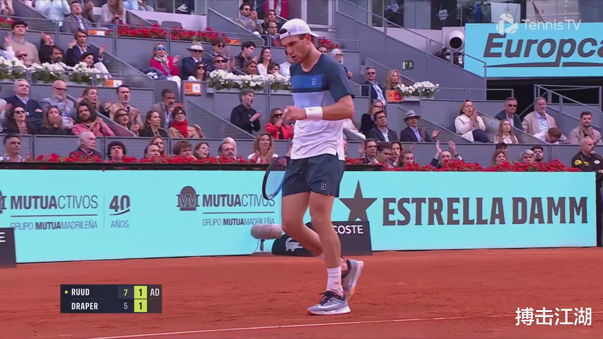 手握5-3领先的德雷珀迎来发球胜盘局,结果比赛没有悬念,6-3保发,拿下第2盘,大比分1比1平。比赛来到了残酷的决胜盘。德雷珀发球,成功保发,之后鲁德也完成保发。两人都展示了高水准,4局过后2-2。