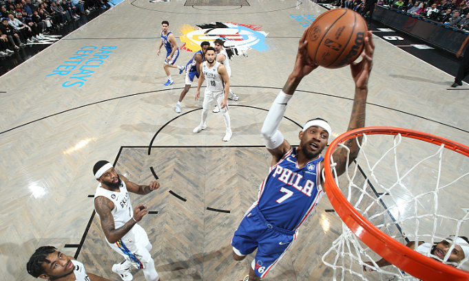 还剩下105秒,卡梅隆-约翰逊暴扣,率领篮网领先3分,打停76人;