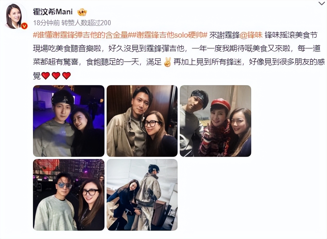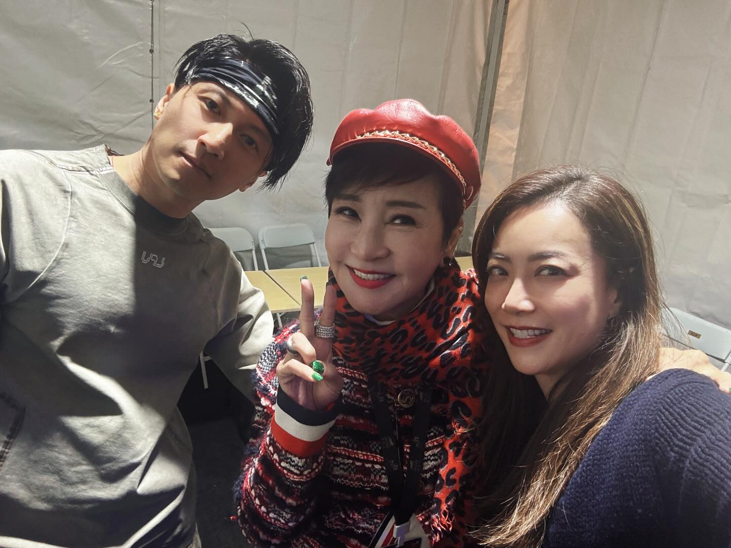 霍汶希晒出多张在后台与谢霆锋的合影照片,其中谢霆锋的妈妈狄波拉也有抵达现场为儿子助阵。