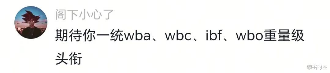 真正了解龙王过去的拳迷当然不会忘记他的成就,随着乙巳年首战即将临近,这些拳迷相继来到他的社交平台留言打气,他们纷纷写到:“加油拿回世界第一”、“喜欢龙王闷雷组合爆肝拳”、“全中国最厉害的拳手”、“期待你一统wba、wbc、ibf、wbo重量级头衔”、“希望龙弟能打败卡巴耶尔,最好是KO”!