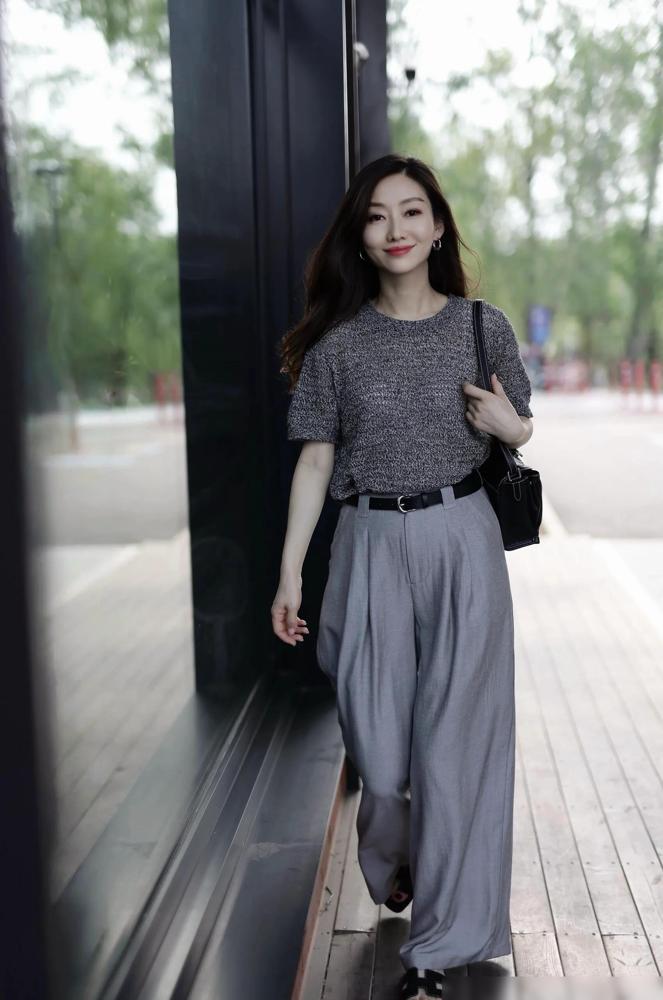 灰色阔腿裤真是衣柜里的宝藏单品,今年春天好像更火了。