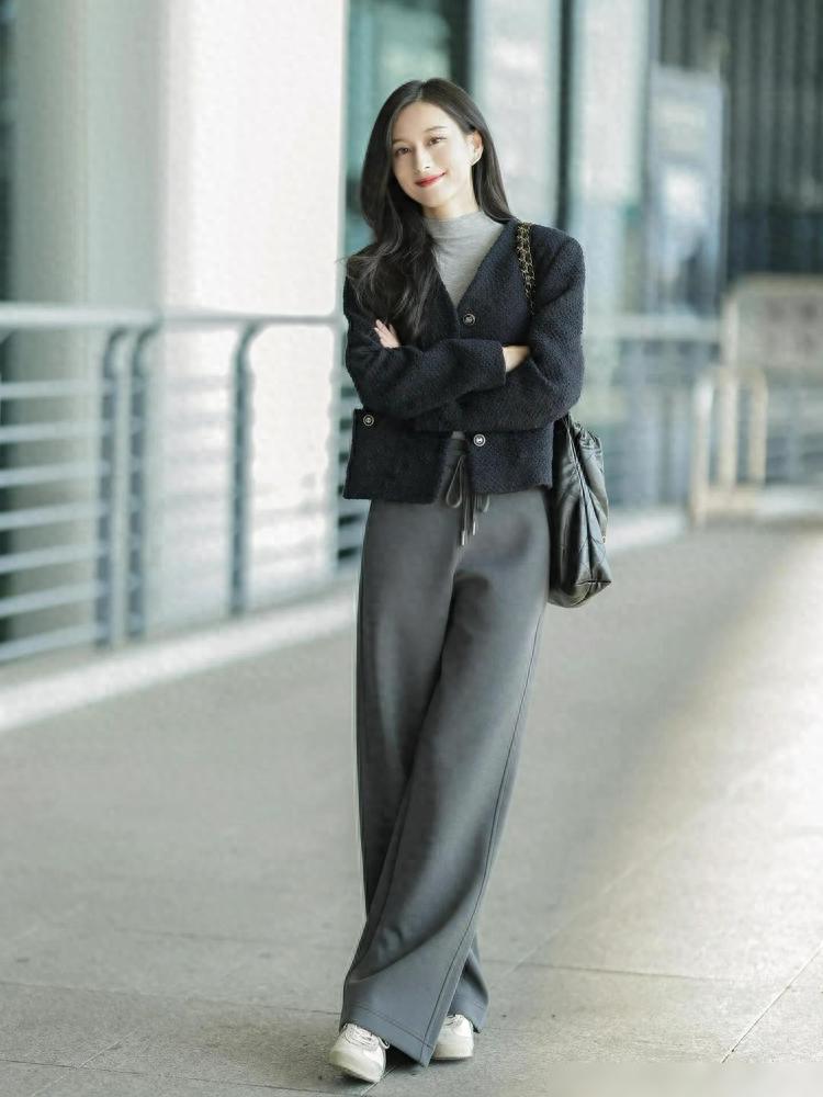 小个子可以试试短外套+高腰阔腿裤,显比例。针织开衫叠穿衬衫也好看,有层次感还不单调。