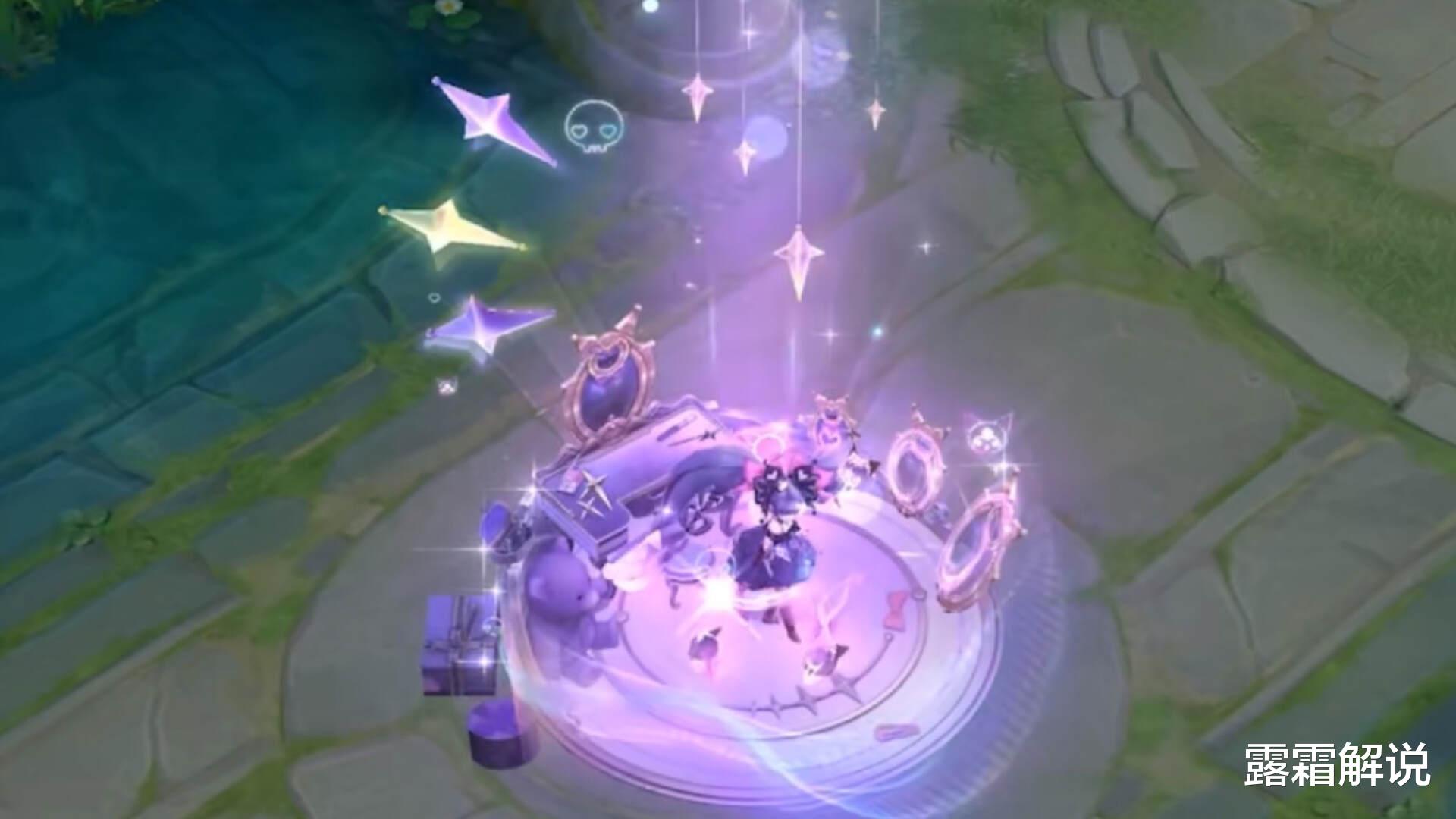 然后是回城特效,如下图所示,这款皮回城的时候,会出现一面镜子,然后酷洛米从镜子里面出来围绕着安琪拉。