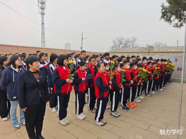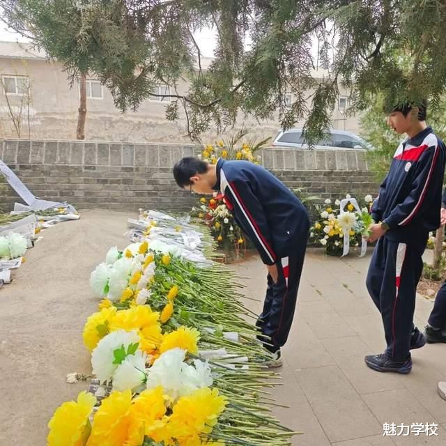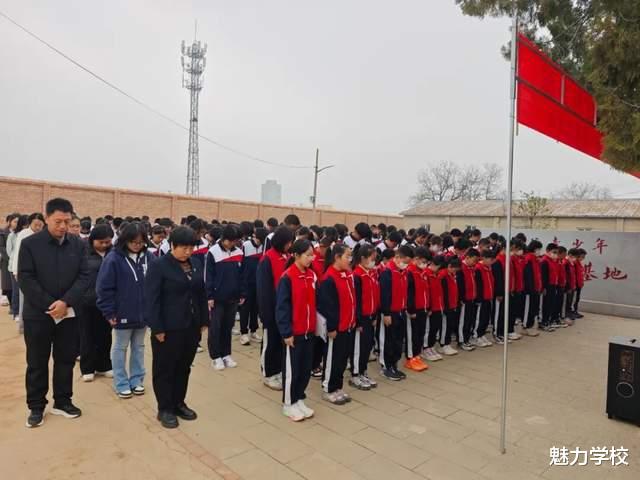 全体师生低头肃立,默哀三分钟,现场寂静无声,唯有阵阵清风寄托着大家对英烈的思念,这一刻,每一份沉默都是对英烈的致敬,每一份哀思都是对精神的传承。