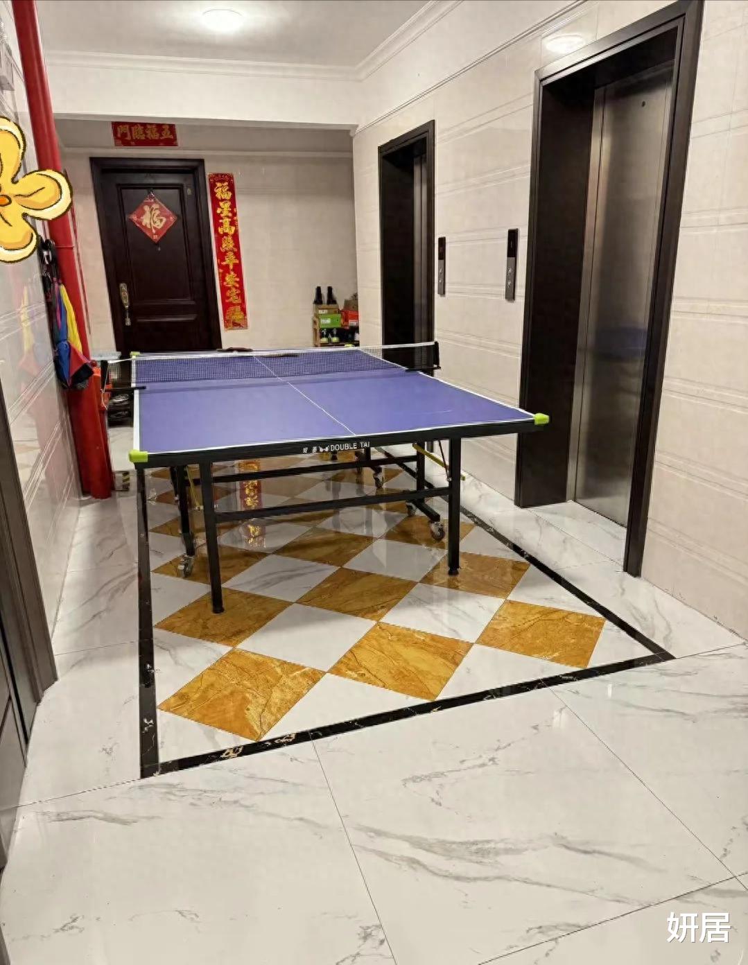 网友熹玥说,自己买的是一套2梯3户的房子,因为现在有房子住,就不太住这里。等小孩上小学准备搬进去时,结果走出电梯瞬间傻眼。其中常住的那一户邻居竟然直接把乒乓球桌放在楼道里,这实在是太无语了。