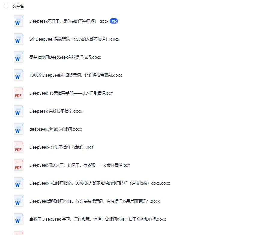 最近两天给大家淘到了一份DeepSeek资源包,里面包含清华大学最新出版的《DeepSeek从入门到精通》,还有wps集成Deepseek教程、DeepSeek使用技巧、提示词技巧等热门资料。