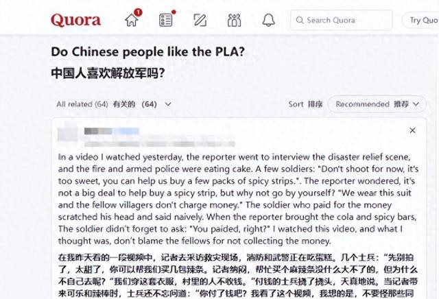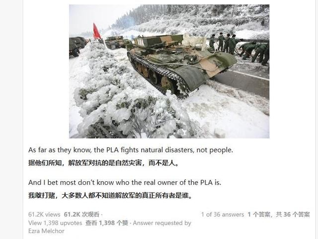 问题是“Do Chinese people like the PLA?”,翻译过来就是“中国人喜欢解放军吗?”