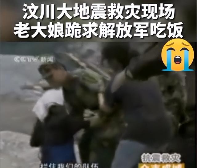 汶川大地震的时候,战士们和时间赛跑,从死神手里救老百姓,没有时间休息,吃饭和睡觉,一位老大娘跪下来哀求让解放军一定要吃点她带来的东西。
