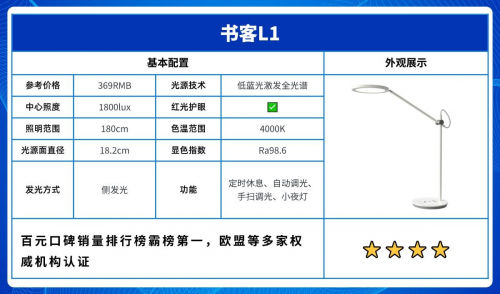 代表型号:书客护眼台灯L2 Pro