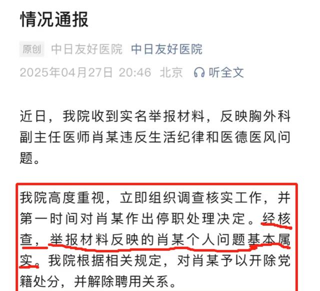 遭妻子实名举报的中日友好医院副主任医师被处理,其...|极目新闻