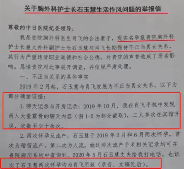 然而,对于举报信中提及的与其他医护人员存在不正当关系的指控,肖飞则坚决予以否认。