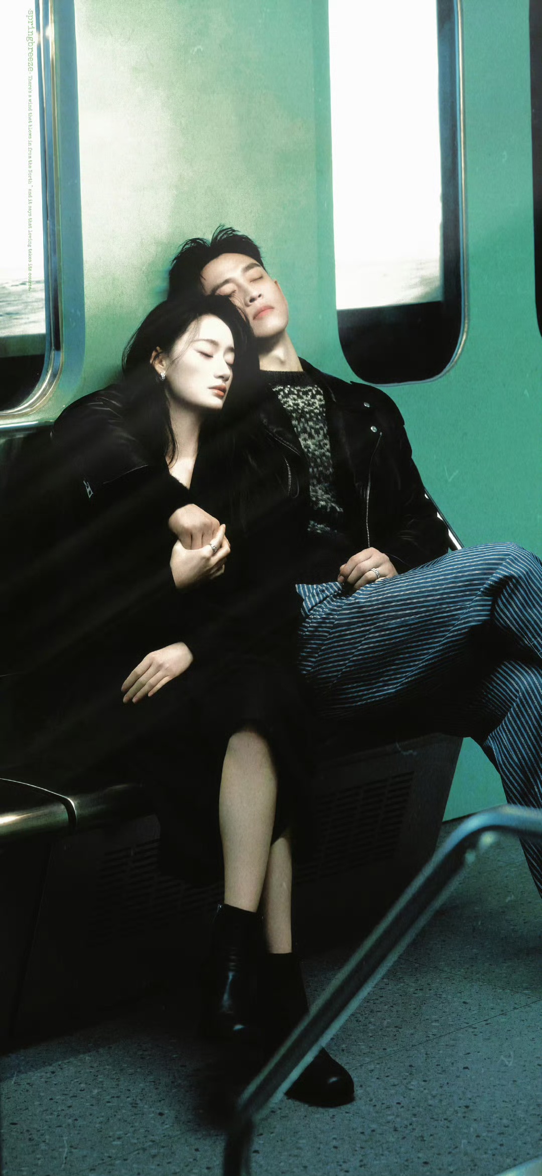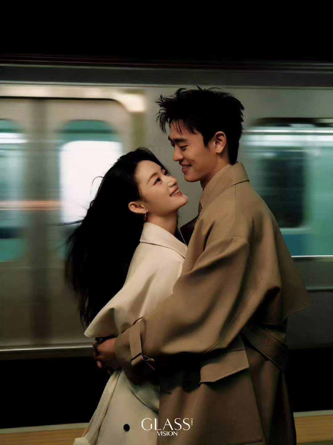 这组“离婚感”大片的出圈,还离不开一个有趣的对比。就在不久前,两人还为另一本杂志拍摄了复古风格的写真。在那组照片里,他们在列车车厢中十指紧扣,额头相抵,眼神里满是温柔与爱意,被网友狂赞“公费恋爱”,CP感直接拉满。从甜到齁的热恋现场,到冷到骨子里的离婚跟拍,这种极致的反差不仅让网友大呼“刺激”,也充分展现了两位演员极强的可塑性和表现力。