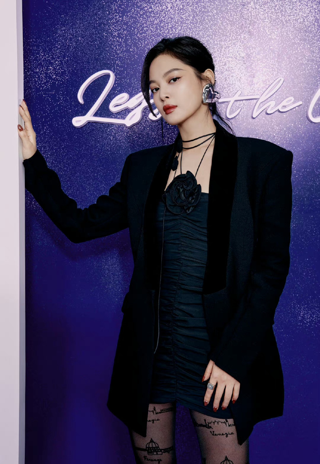 辛芷蕾一身穿搭把酷飒与性感精准糅合,外搭廓形感十足的黑色西装,利落肩线瞬间拉满气场;内搭黑色褶皱修身短裙,紧紧包裹出窈窕有致的身段。