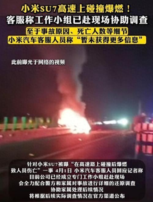 光明网 SU7被曝“高速碰撞爆燃,致3人遇难”,小米公布事故细节2025-04-01