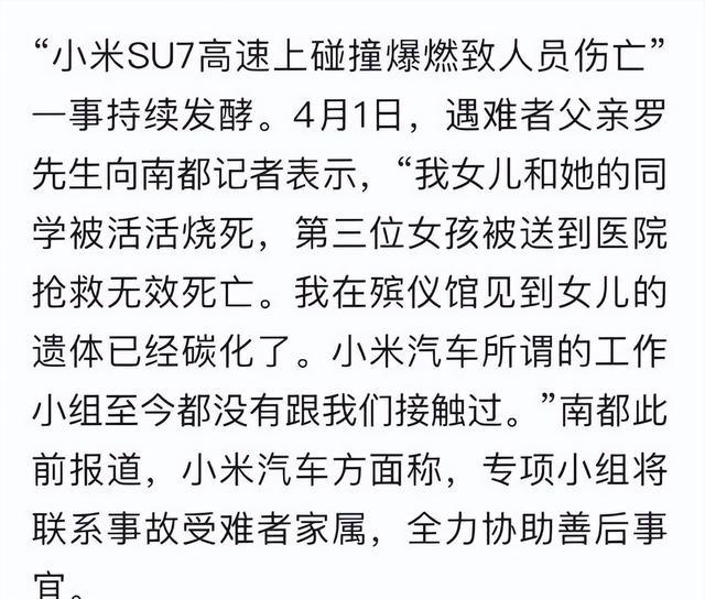 小米除了调查此事之外,也表示了会在4月1日的时候和家属们会面,不过,遇难者的父亲却表示并没有和小米有过任何接触。