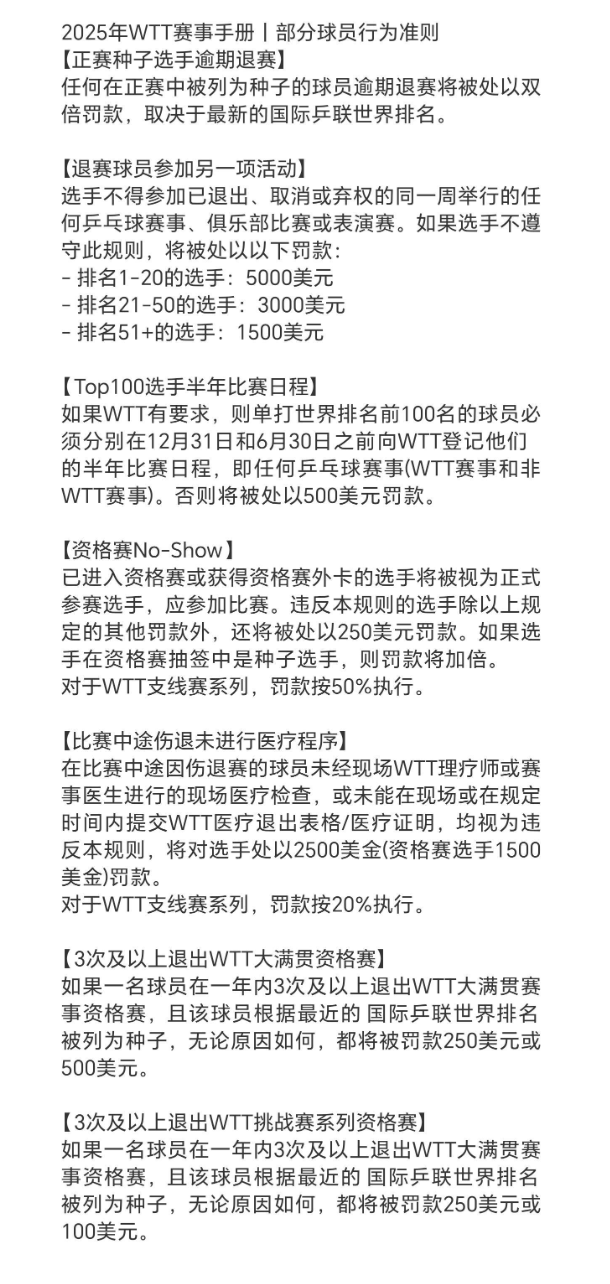 樊振东的退出,也引发连锁反应,那就是马龙和陈梦很有可能会紧跟,马龙在中国大满贯之后表示考虑退出国际比赛,陈梦和樊振东一样从未在巴黎奥运会之后参加国际比赛,如今新规的情况下,罚款和处罚太密集,马龙和陈梦很有可能也会宣布退出世界排名。