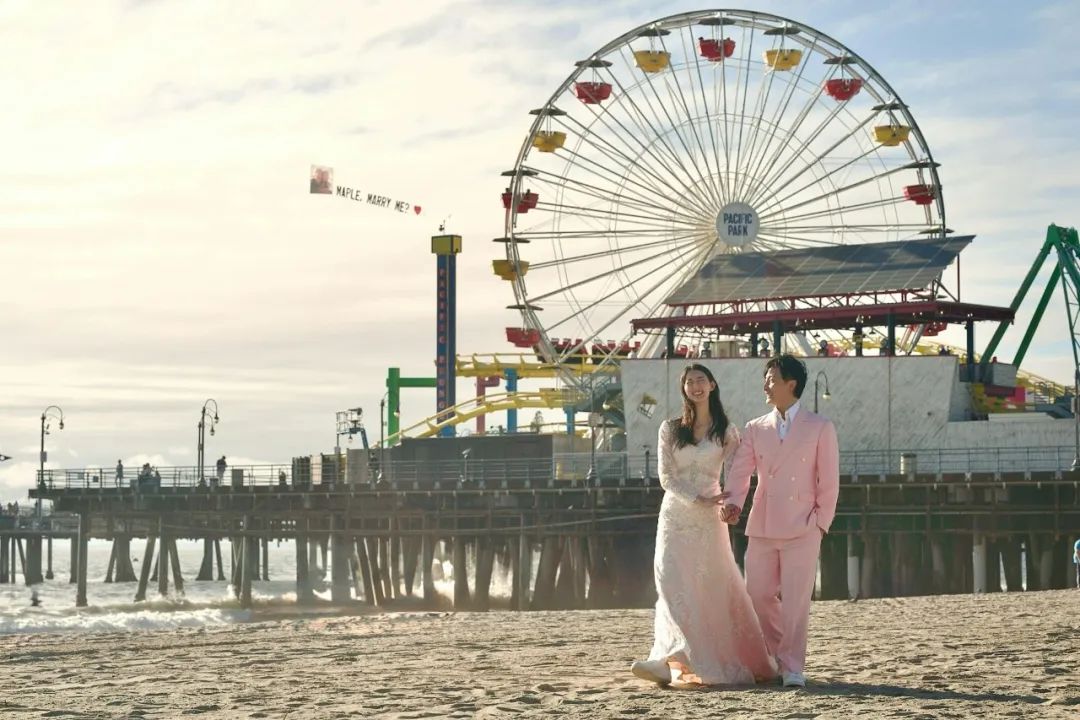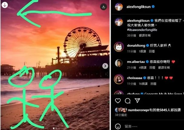 另一张相就系佢同Maple二人背影照,右上角更打上「Maple, merry me?」疑似晒出求婚现场照片,二人同以粉红色情侣装上阵。
