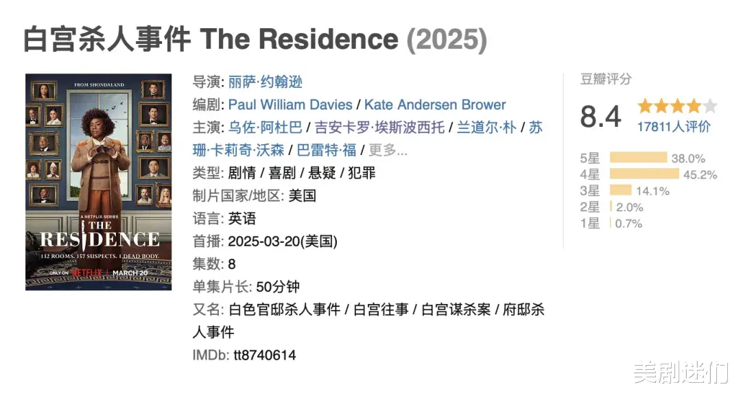在豆瓣,《白宫杀人事件》拿到了8.4分的高分,也深得国内观众喜爱。