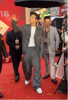 半年前他那套唐装造型确实惊艳,但那种精致更像是完成一场“时尚命题作文”。而这次雨中略显潦草的亮相,反倒透出点真实的生活感。下巴的皱纹、稍显疲惫的状态,这些在精修图里会被修掉的细节,此刻却让他显得更像一个具体的人,而非一个完美的符号。