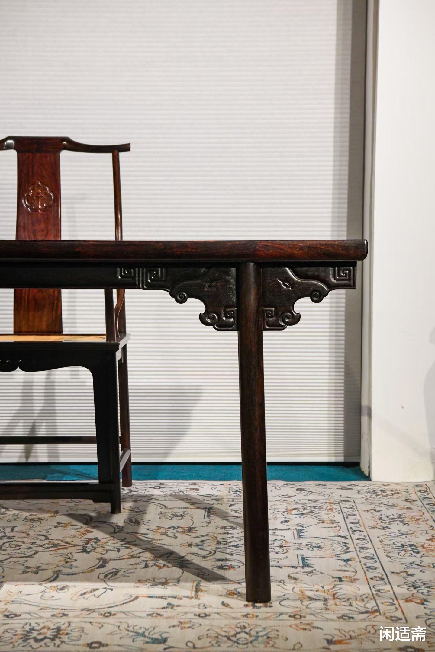 作为一款收藏级明式画案,此器兼具实用与陈设双重价值。置于书房,可作为挥毫泼墨的画案,承载笔墨纸砚,让文人在笔墨丹青间感受中式雅韵;陈于厅堂,可作为陈设雅器的案几,摆放古籍、青瓷、盆景等,成为空间中的视觉核心,彰显主人的不俗品味与收藏眼光。