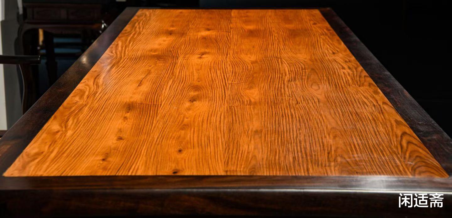 材质的甄选与搭配,彰显此画案的珍稀格调。案面采用紫檀镶黄花梨面板的经典组合,两种顶级红木的碰撞,既显材质本真之美,又添层次质感。紫檀素有“木中之王”的美誉,资源极度稀缺,木色深紫温润,质地坚硬沉重,油性充足,经打磨后泛着细腻莹泽,为画案奠定沉稳大气的基调。