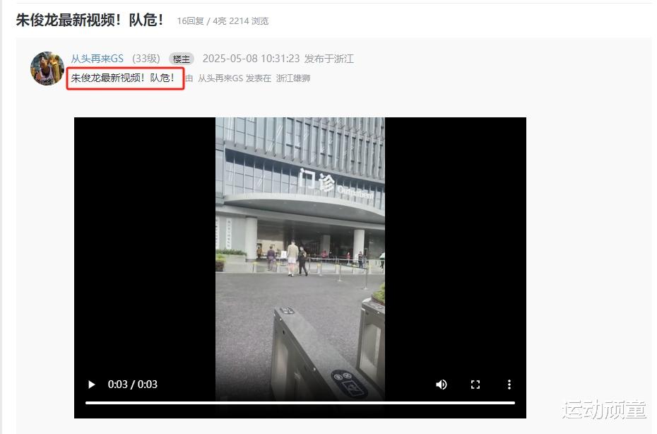 那么现在朱俊龙伤情如何?细心的球迷把朱俊龙今天到医院检查的视频发到网上,看到他走路走路是一瘸一拐的,是在有人的搀扶下走进医院的,可见朱俊龙的伤并不乐观。第二场比赛明天就要开打了,在这么短时间内,他根本打不了G2。网友在论坛晒出朱俊龙到医院检查的视频,并配文:“朱俊龙最新视频!队危!”