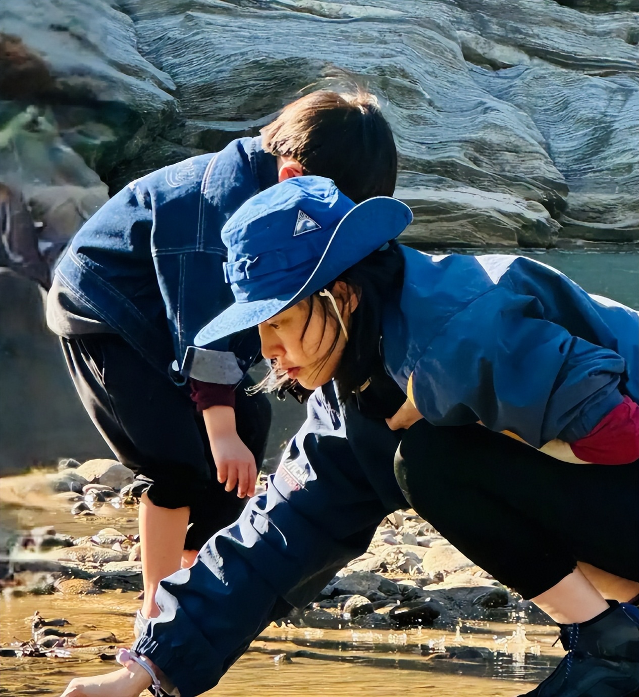 4岁儿子穿着牛仔外套和妈妈一起在水中玩耍,裤腿被挽了上去防止湿裤子,整身打扮干净又整洁,看来被妈妈照顾得很好。白百何与儿子在水中时也不忘清理垃圾,以身作则为儿子灌输爱护环境的理念,超有责任心。