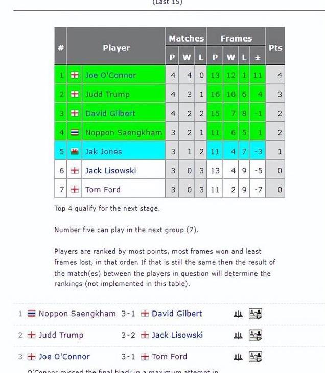 决赛被塞尔特一顿胖揍,打得连他妈都不认识了。这心情,估计比喝了苦瓜汁还苦。想他平时“无敌是多么寂寞”,现在好了,寂寞是真寂寞,冠军是真没拿到!第六小组的比赛也打响了。好家伙,这阵容:特鲁姆普、福德、琼斯、奥康纳……全是狠角色!这就像一桌麻将,高手过招,谁输谁赢还真不好说。特鲁姆普第一天3胜1负,排在第二,看着还不错,但奥康纳这小子第一天4连胜,状态火得跟冬天里的一把火似的!还有吉尔伯特,之前可是赢过特鲁姆普的,这就像高手过招,谁都有自己的杀手锏。特鲁姆普想夺冠?