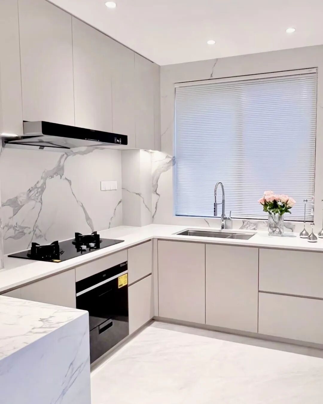 L型布局:长边做高区(水槽+备餐),短边做低区(灶台)