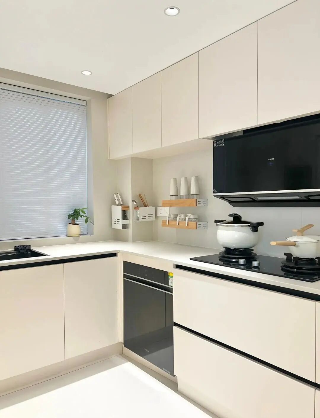 预留电源:至少两个插座,给料理机、充电设备照明重点:吊柜下必须装灯带,切菜无阴影临时收纳:上方墙面做挂杆,常用工具触手可及