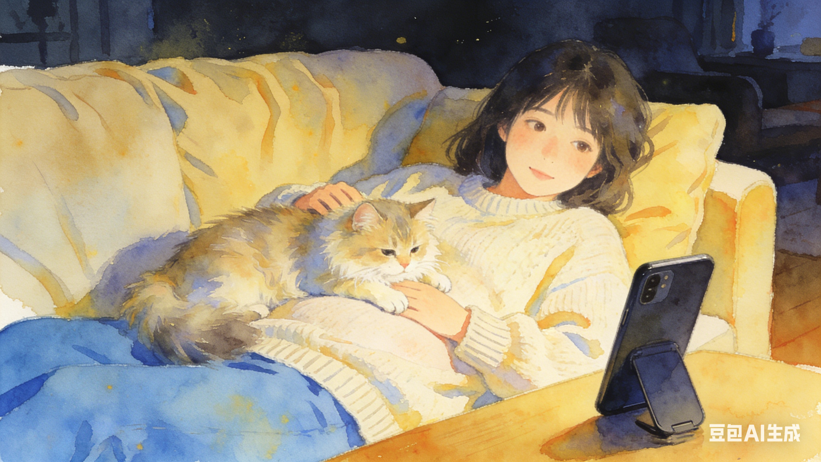 家里的猫轻轻跳上来,趴在我的肚子上,发出咕噜咕噜的轻响,温热的小身子贴着我,格外治愈。我伸出手,一下一下摸着它柔软的毛发,脑子里一片空白,什么都不用想,什么都不用做。