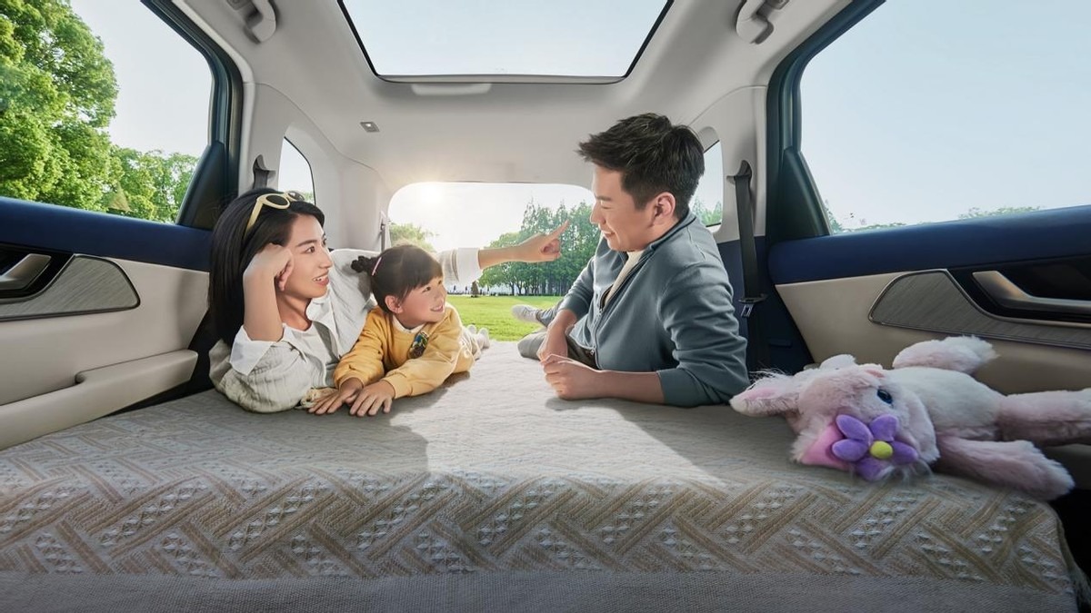 尤为亮眼的是其“大平层”理念的落地实践:二、三排座椅可一键放倒,瞬间变身2.1㎡的大床房。这意味着,风云T9不仅是交通工具,更是移动的休憩空间、亲子乐园甚至临时办公室。此外,全车配备38处储物格,后备厢最大容积可达2065L,足以容纳30个行李箱——对于多孩家庭或长途旅行爱好者而言,这无疑是刚需级配置。