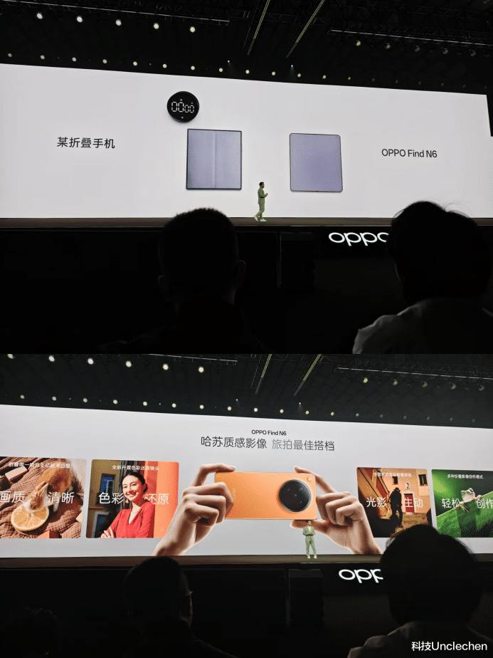 OPPO Find N6竟然找不到折痕?刚看到OPPO发布会上一群人围着一面墙找Find N6,混在一堆平板里愣是分辨不出来哪个是折叠屏手机!比如有人说OPPO Find N6从侧面看几乎看不出折痕,摸上去也是平的