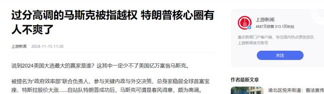过分高调的马斯克被指越权 特朗普核心圈有人不爽了 -上游新闻
