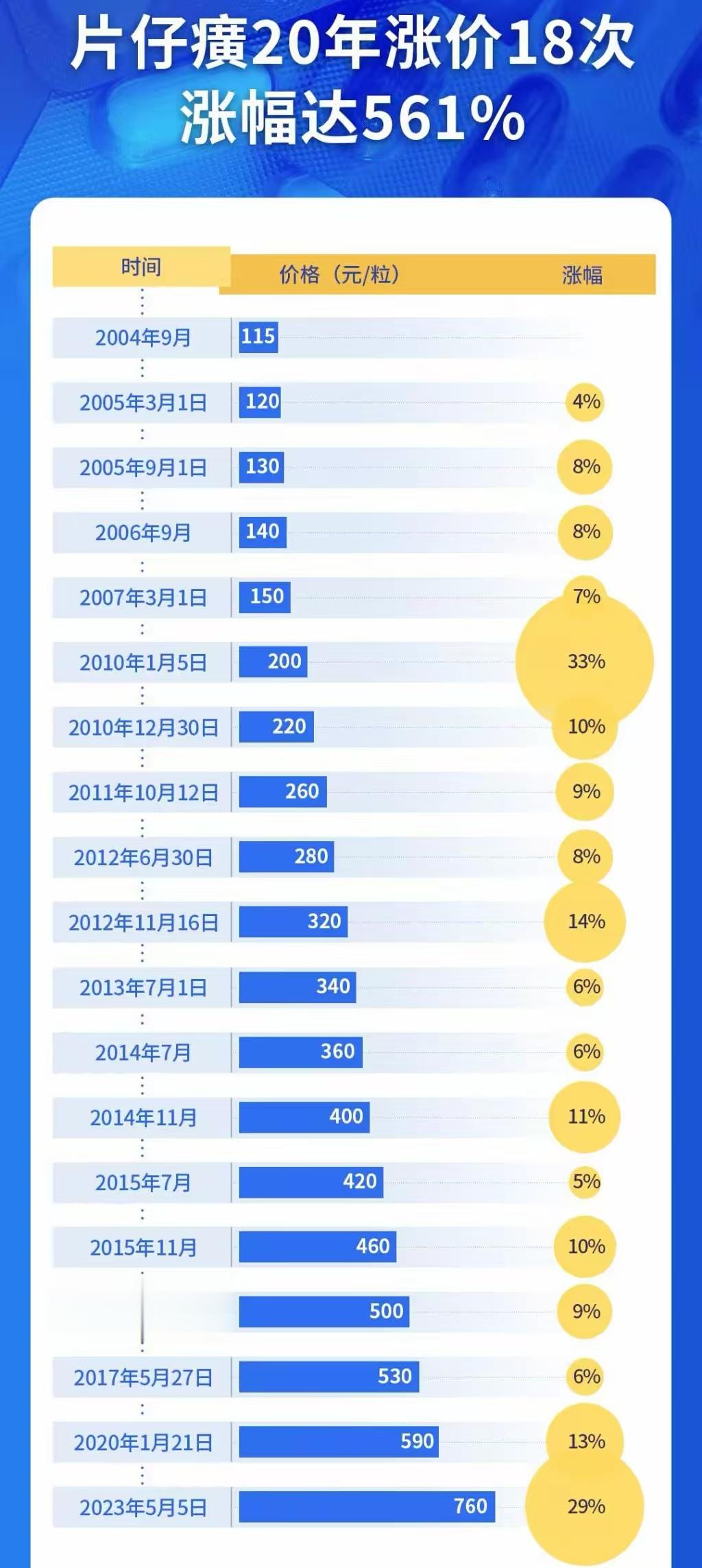 目前在各类官网上,片仔癀的官方指导价为760元,而在过去无序的炒作以及渲染过度的营销攻势下,曾经片仔癀涨到市场零售价1600元,当时黄牛赚的是盆满钵满,那些囤积居奇的炒家也是笑得合不拢嘴。但是现在真的价格回来了,回跌超过50%,而且随时可以购买,再也不用找黄牛了。