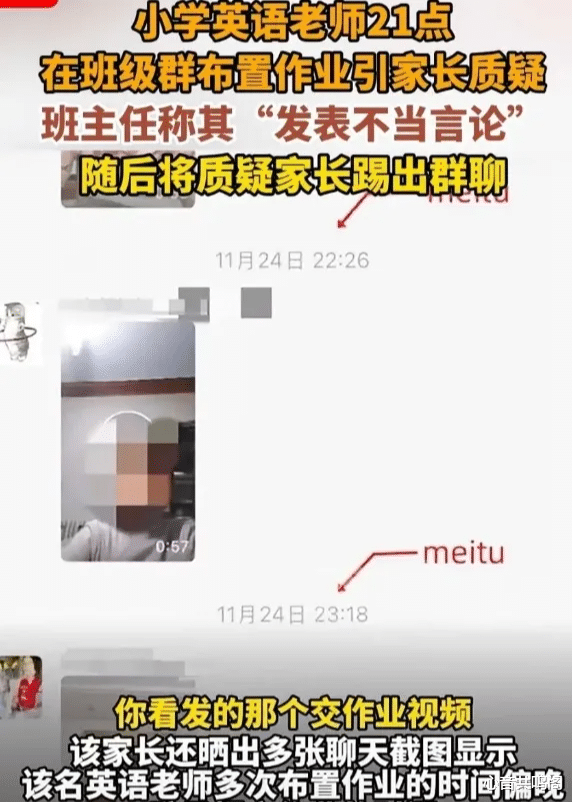 据家长徐先生反映,他家孩子所在班级的英语吴老师经常在晚上八九点钟才布置作业。12 月 26 日晚 9 点多,当孩子们准备入睡之时,吴老师又在班级群里发布了一项内容不少的英语抄写作业。这让徐先生心中的怒火一下子被点燃,他直言不讳地在群里质问老师:“9 点半了才发作业,让孩子怎么写啊?不写了!你们上学的时候老师也这么晚布置作业吗?” 吴老师或许意识到自己的不妥,选择了沉默。但令人意想不到的是,班主任马老师随后却 “登场” 了,她以一种盛气凌人的姿态警告徐先生:“有任何事情都找老师直接沟通,合理提出自己的要求。或者可以直接跟我说,我来转告。不要在家长群里发表不当言论!” 结尾那三个醒目的感叹号,仿佛是在向家长宣告她的权威不容置疑。徐先生自然不肯示弱,继续回怼,可还没等他把话说完,就被班主任移出了班级群。