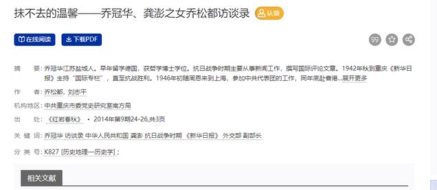 参考资料:[1]乔松都,刘志平.抹不去的温馨——乔冠华、龚澎之女乔松都访谈录[J].红岩春秋,2014(9):24-26