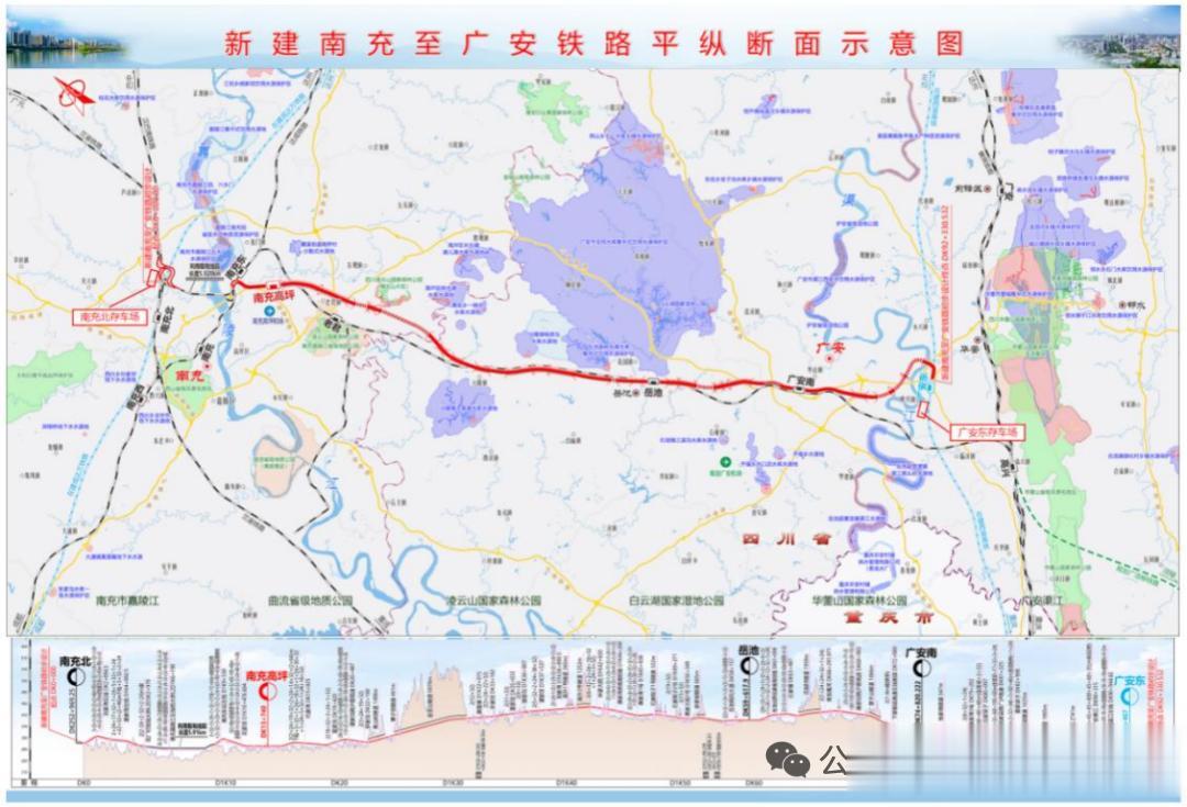 项目正线起于南充北站东端汉巴南铁路区间的强家湾线路所,向东南经南充市、岳池县、广安市、华蓥市,终至在建西渝高铁广安东站。新建正线84.227公里,速度目标值250公里/小时,投资估算总额约195.3亿元。