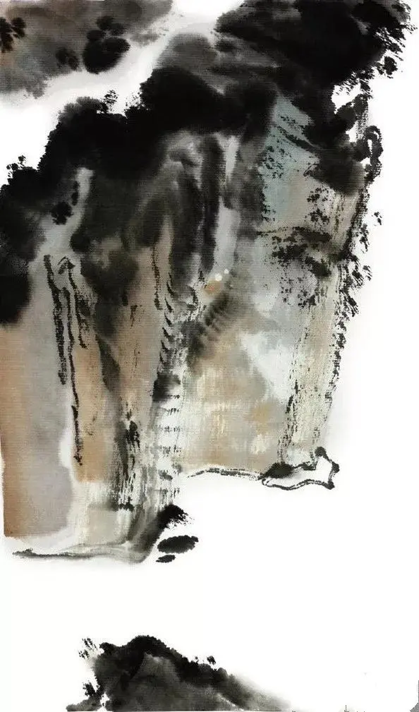 要点:浓墨块面集中在山的主体,皴擦顺着山的纹理方向,强化崖壁的坚硬质感
