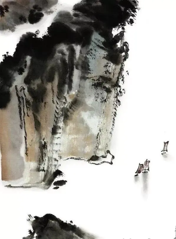 帆船:在江面留白的 “透气处”,用重墨极简勾勒船身 + 帆(尺寸占画面 1/20 左右)