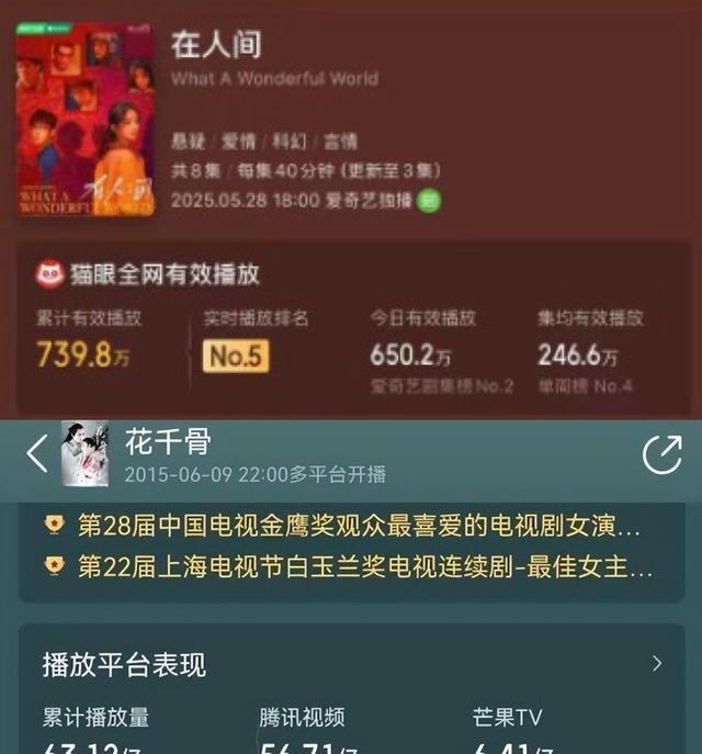 即使平台播出4.8 亿播放量,可对比她早年《花千骨》的上星收视,这次纯网播少了国民度加成,虽说猫眼热度破 9800,但没上星就意味着错失中老年观众;