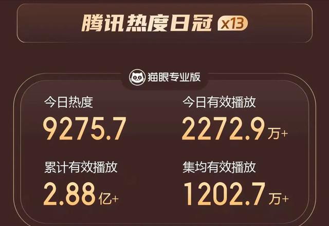 然而,该剧的网络播放量却相对平淡,腾讯视频的播放量在收官时仅为4.8亿。