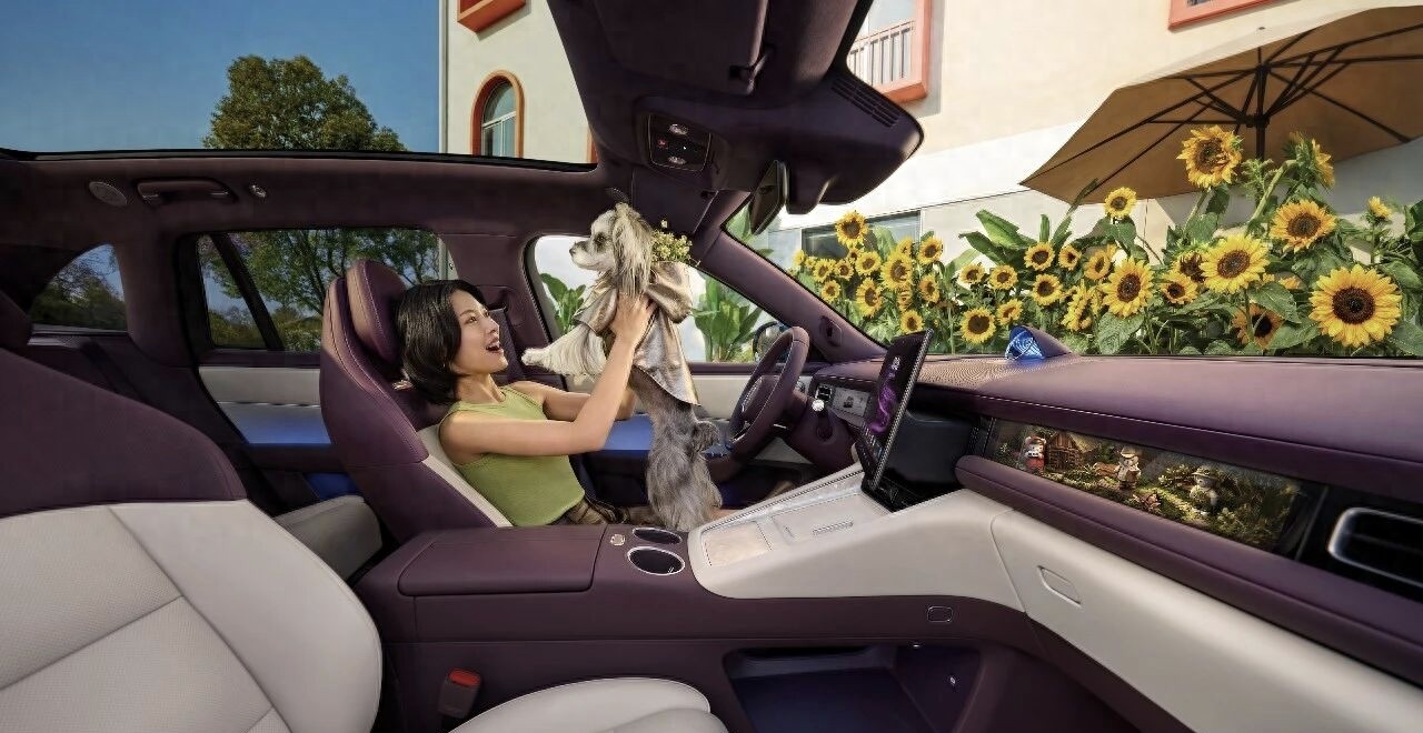 中控屏为可转头的随动屏,副驾前方为灵感橱窗——相当于一个开放式储物空间,可以摆放车主喜欢的各类小摆件,轻松调动车内氛围。